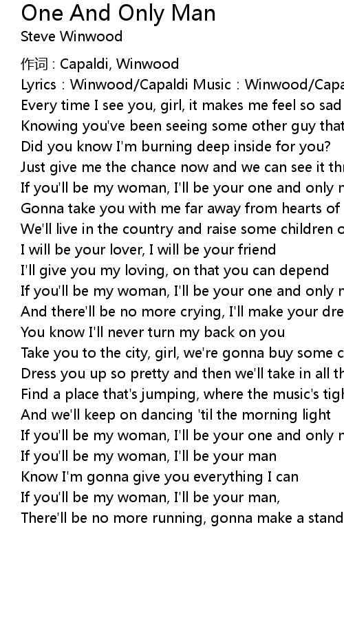| If you'll be my woman, I'll be your one and only man | |
