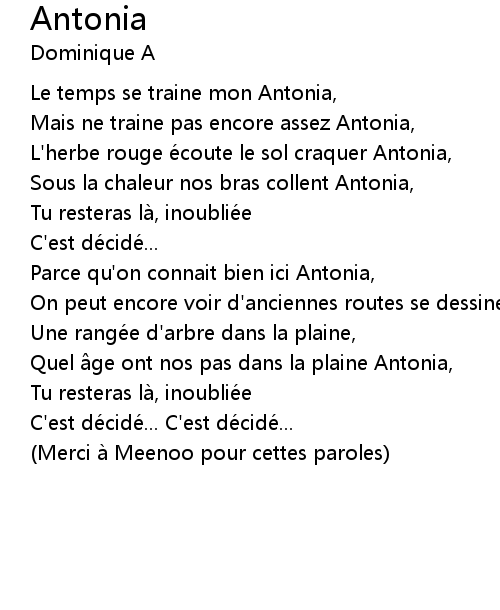 | L' herbe rouge é coute le sol craquer Antonia, | |