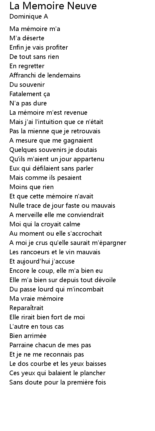 | 歌曲 | La Memoire Neuve |