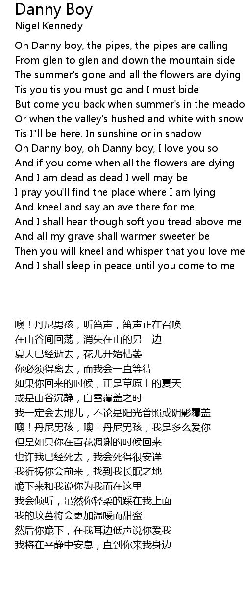 Oh Danny boy, oh Danny boy, I love you so |