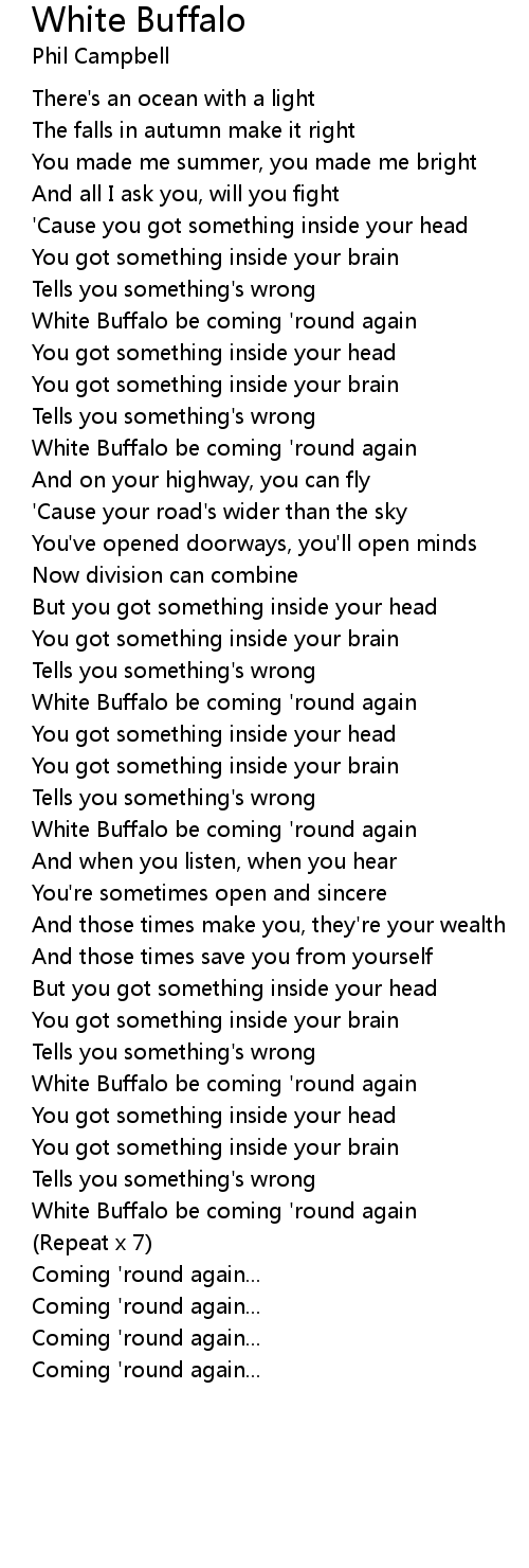 White Buffalo be coming 'round again |
