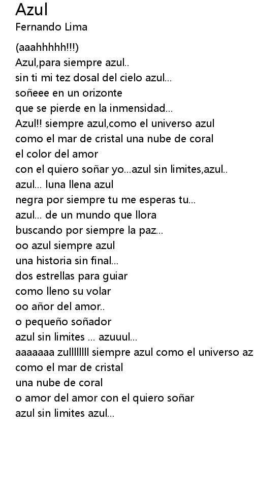 | [01:41.50] | con el quiero so ar yo... azul sin limites, azul.. |