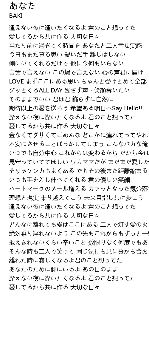 | 離れた時に寂しくなるよ君のこと想ってた | |