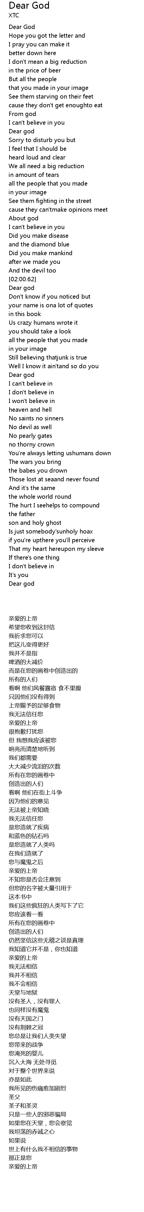 Dear God 歌词