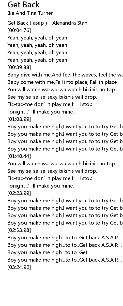 | [00:01.30] | Get Back asap Alexandra Stan |
