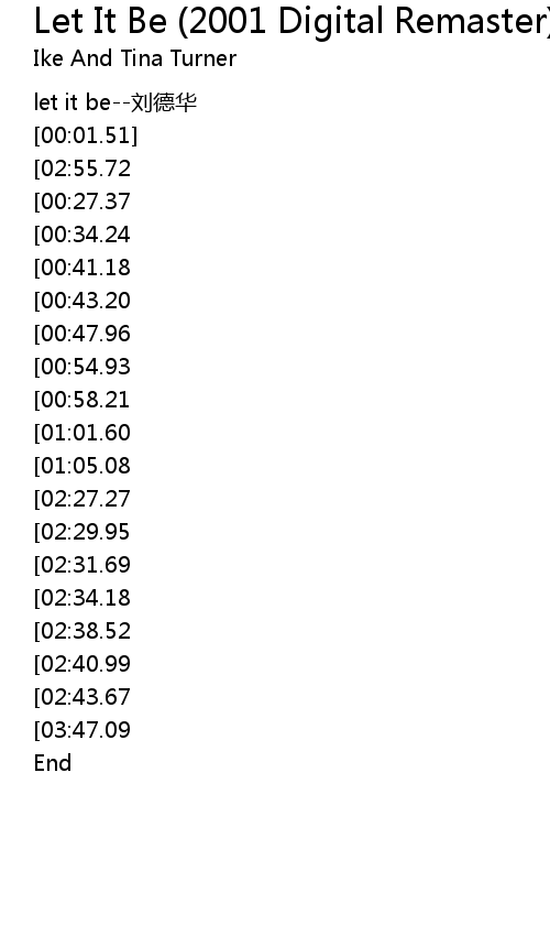 | [00:00.00] | let it be liu de hua |
