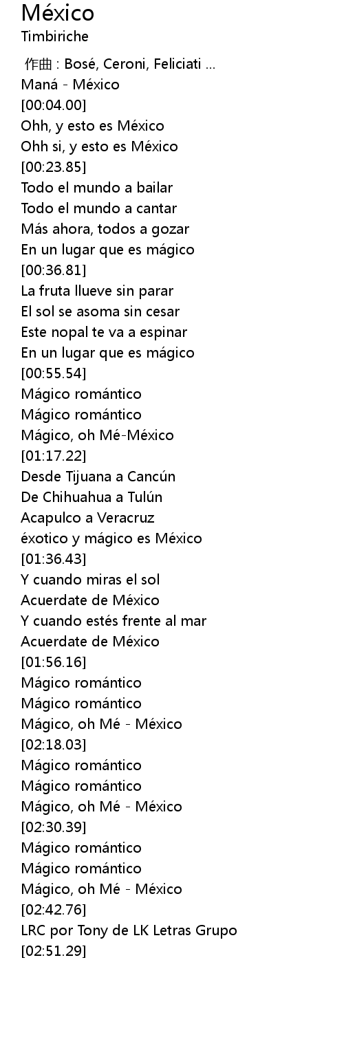 | [01:14.29] | Ma gico, oh Me Me xico |