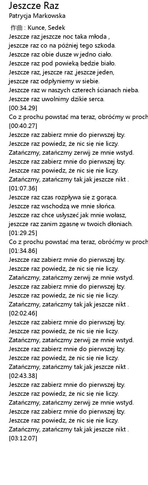 | [00:21.11] | Jeszcze raz, jeszcze raz , jeszcze jeden, |