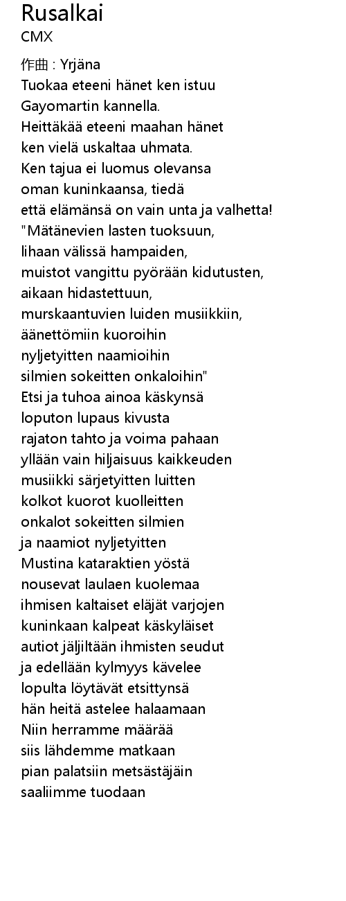 | 作曲 : Yrjäna | |