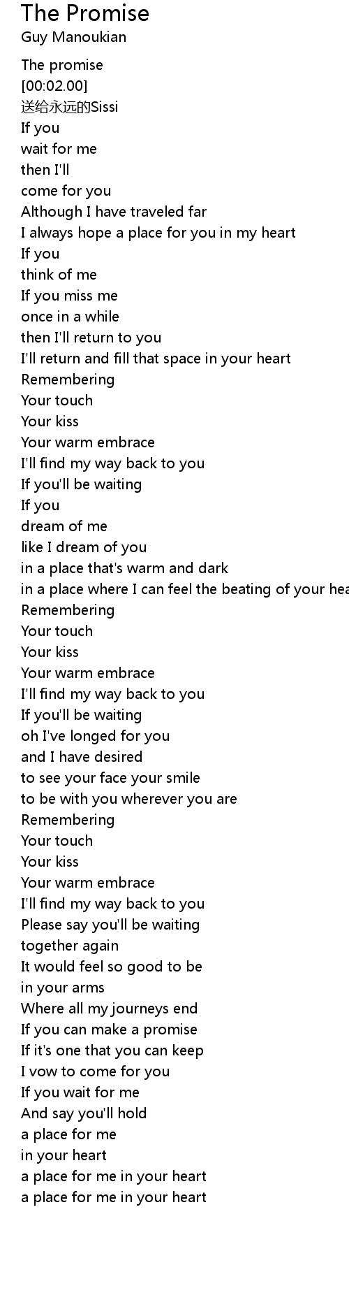 | [01:13.00] | I' ll return and fill that space in your heart |