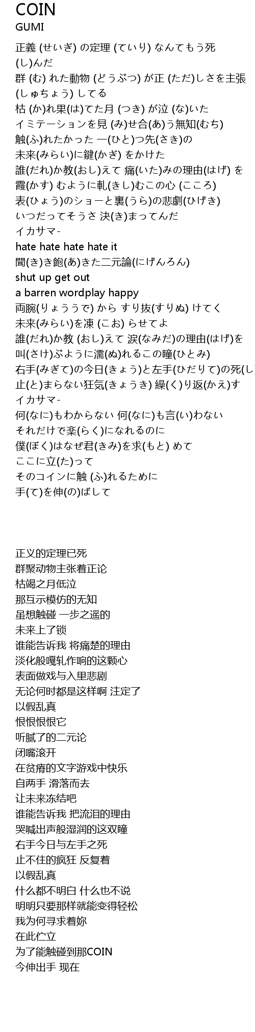 | [03:33.060] | 为了能触碰到那COIN |