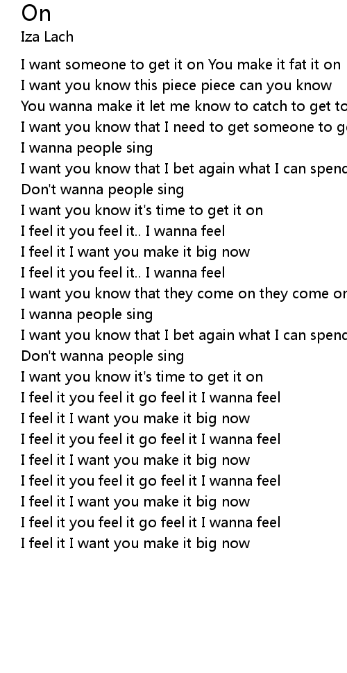 | I want someone to get it on You make it fat it on | |
