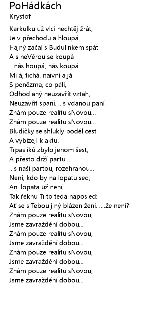 | Zná m pouze realitu sNovou, | |