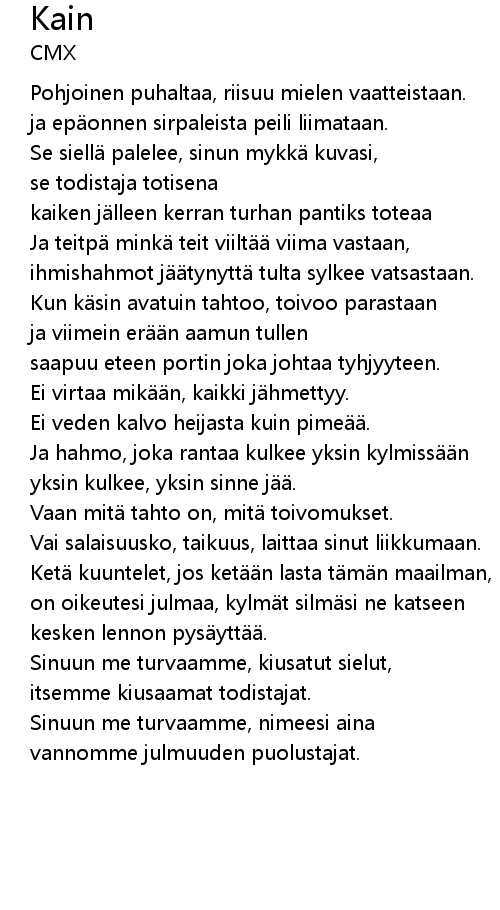 | Ket kuuntelet, jos ket n lasta t m n maailman, | |