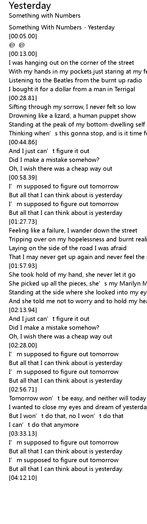 | [00:01.00] | Something With Numbers - Yesterday |