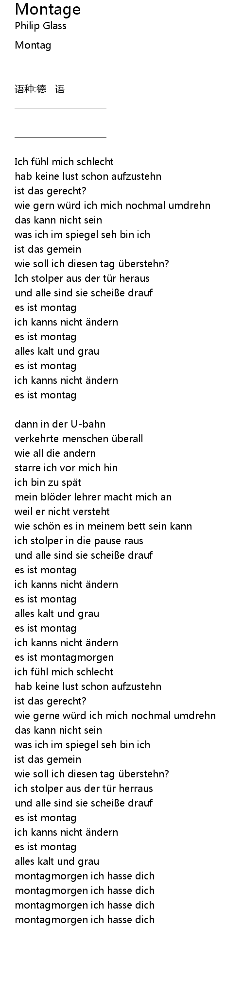 | montagmorgen ich hasse dich | |