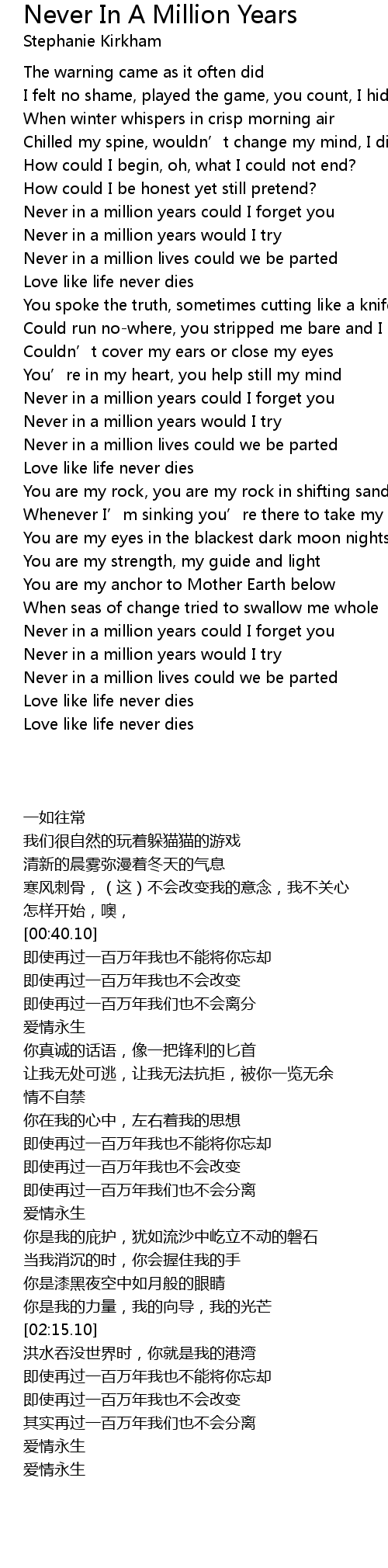 | [02:38.10] | 其实再过一百万年我们也不会分离 |