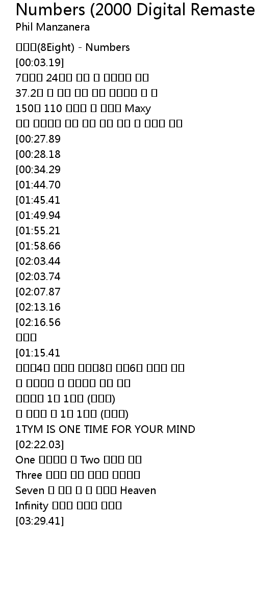 | [00:01.12] | 에이트(8Eight) - Numbers |