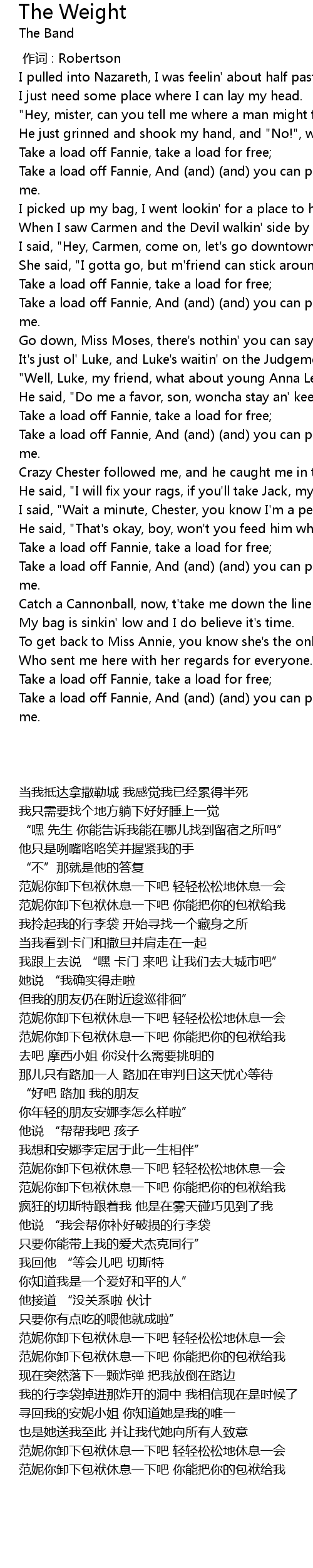 | 歌曲 | The Weight |