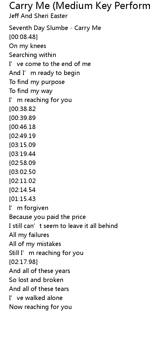 | [03:40.26][03:15.09][02:50.14][01:54.25][00:51.85] | Won' t you carry me |