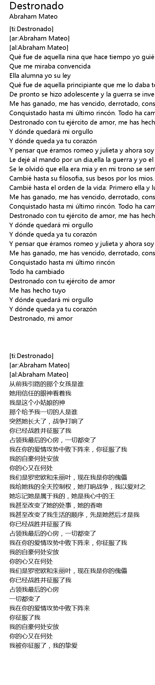 | [03:33.10] | Destronado, mi amor |
