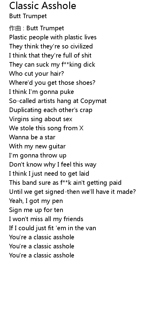 | 歌曲 | Classic Asshole |