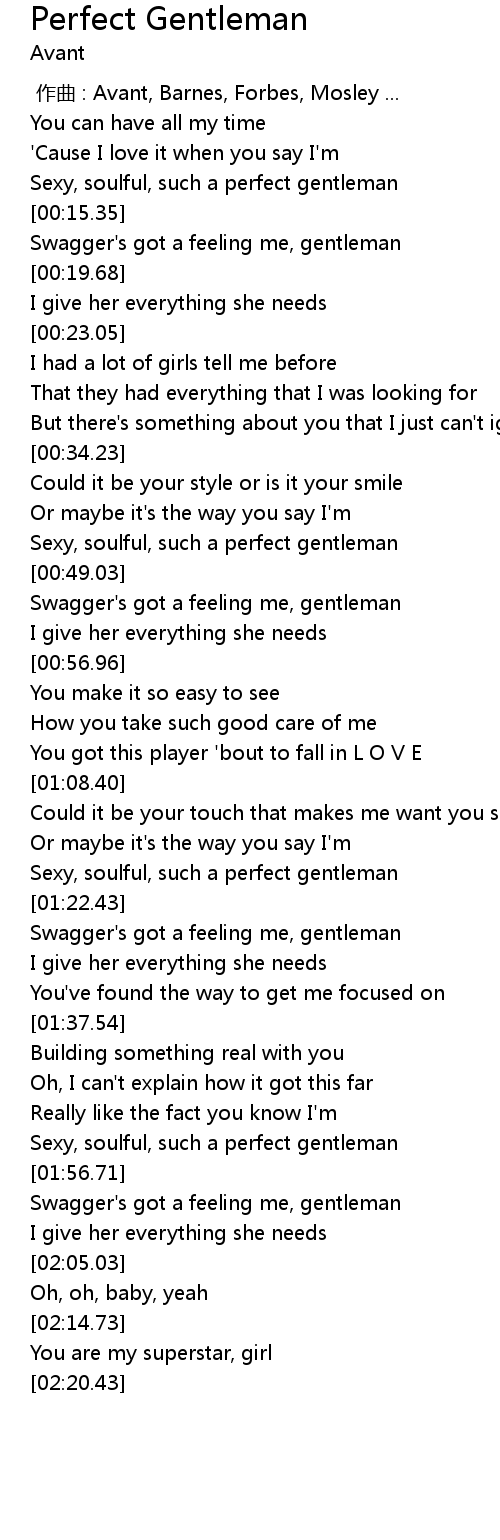 | [00:42.72] | Sexy, soulful, such a perfect gentleman |