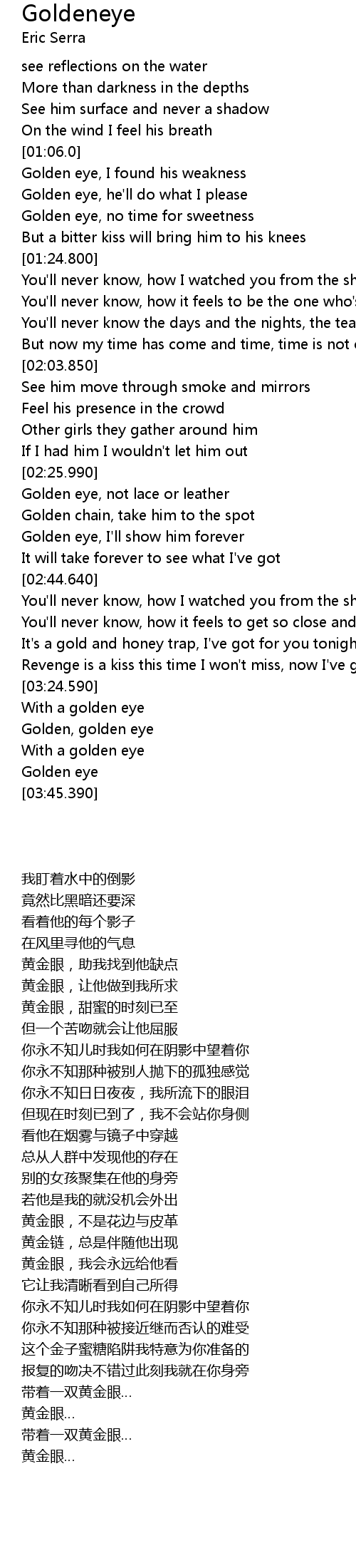| [02:35.620] | Golden eye, I' ll show him forever |