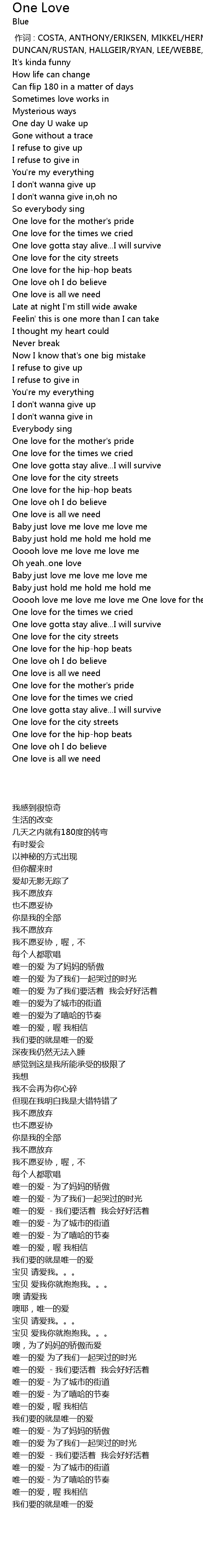 | [03:23.470] | 我们要的就是唯一的爱 |