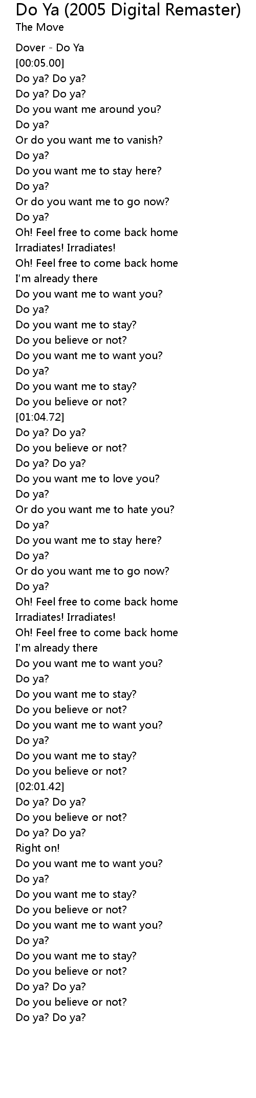 | 歌曲 | Do Ya (2005 Digital Remaster) |