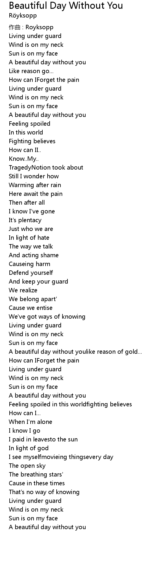 | 歌曲 | Beautiful Day Without You |