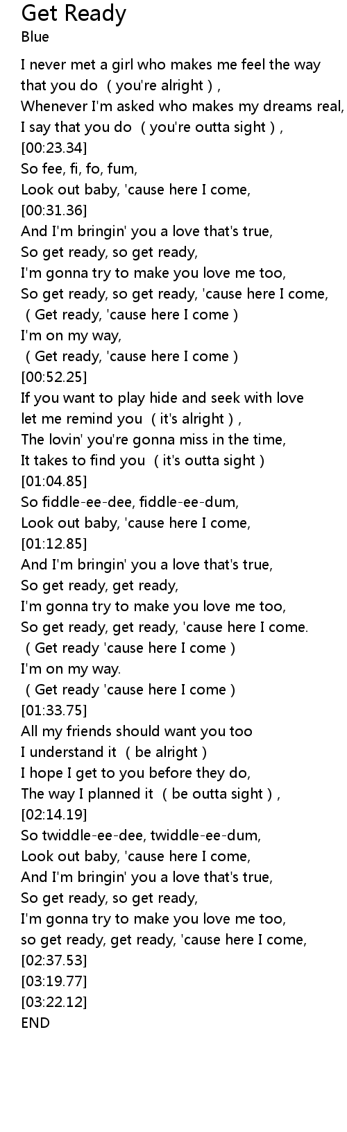 | [01:22.92] | So get ready, get ready, ' cause here I come. |
