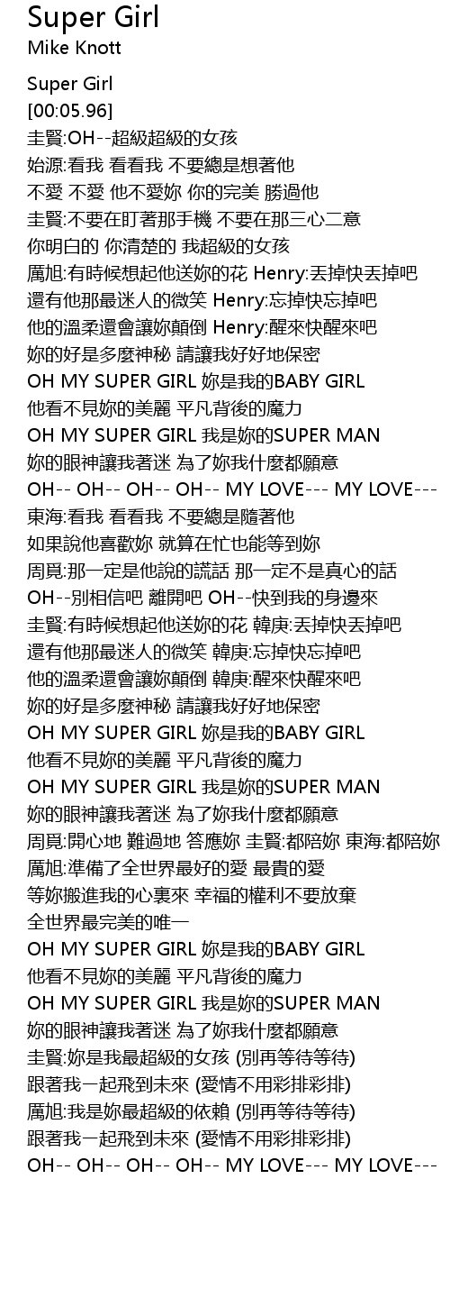 | [01:02.92] | OH MY SUPER GIRL 妳是我的BABY GIRL |