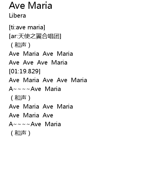 | [01:31.765] | Ave Maria Ave Ave Maria |