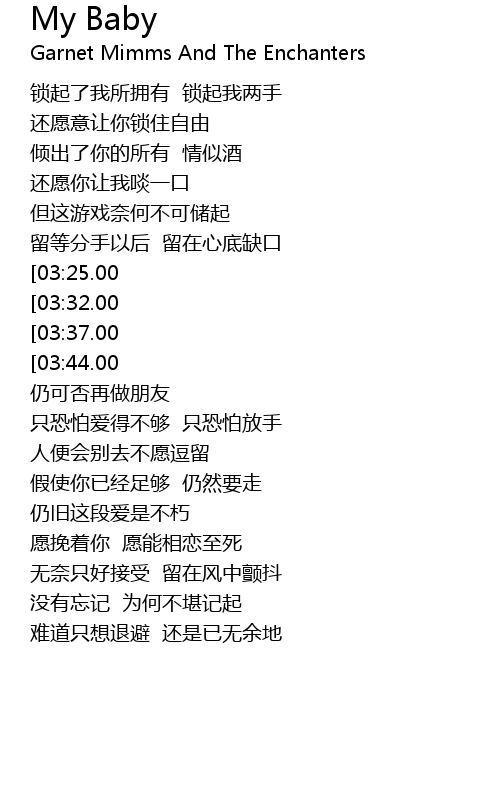 | [04:02.00][03:37.00][02:33.00][01:18.00] | MY BABY 请不要悄悄飘走 |