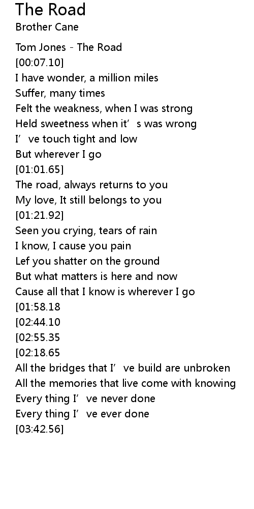 | [00:01.12] | Tom Jones - The Road |