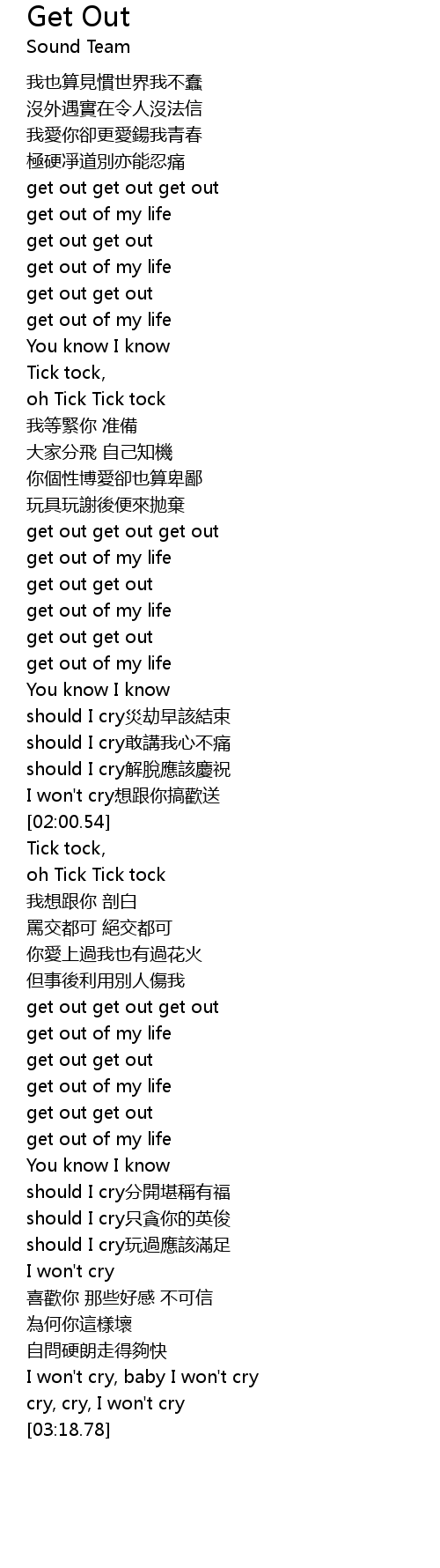 | [01:02.04] | get out get out |