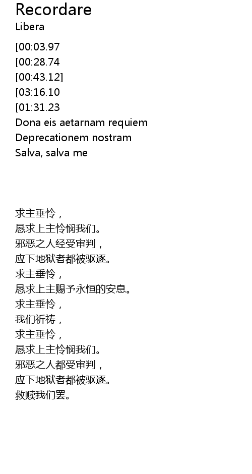 | [01:53.32][01:31.23] | Recordare, miserere |