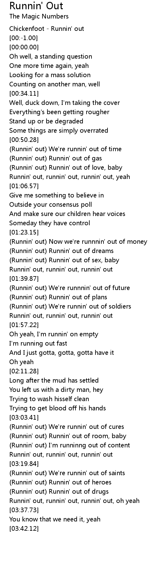 [03:32.09] Runnin' out, runnin' out, runnin' out, oh yeah