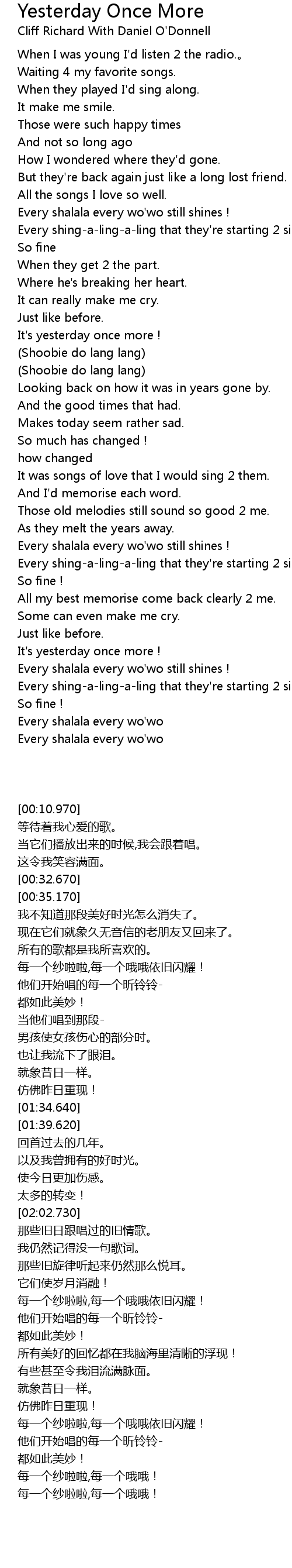 | [00:10.970] | When I was young I' d listen 2 the radio.. |