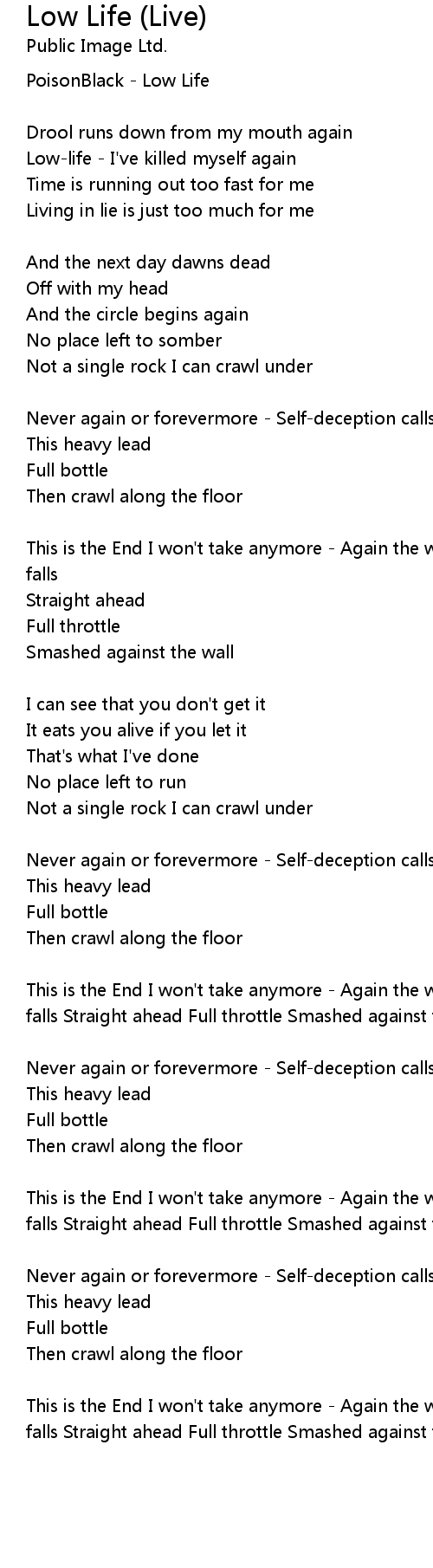 Low-life - I've killed myself again |