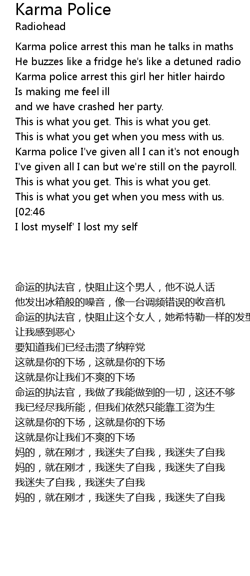 Karma police I've given all I can it's not enough |