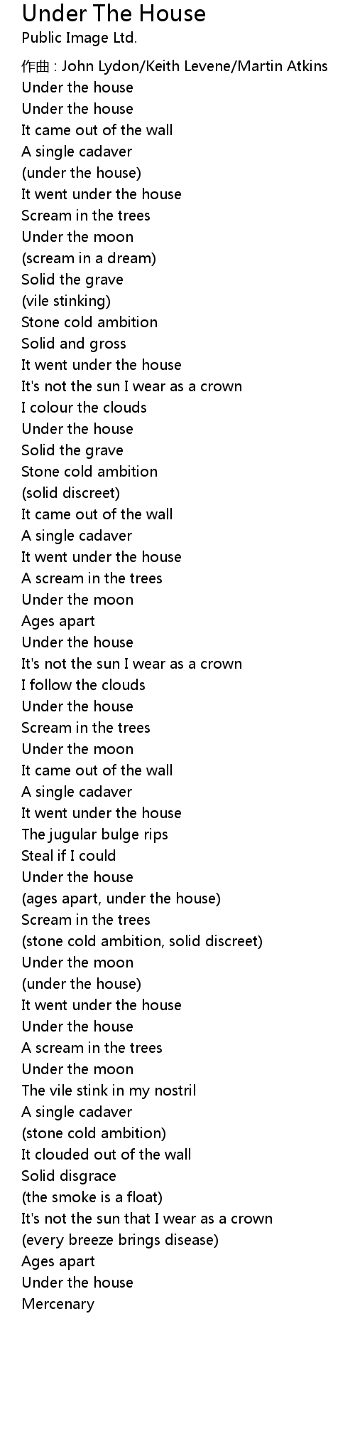 | zuò qǔ : John Lydon Keith Levene Martin Atkins | |