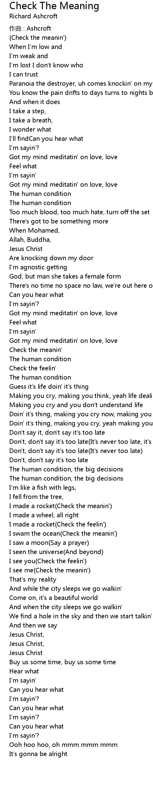 | 歌曲 | Check The Meaning |