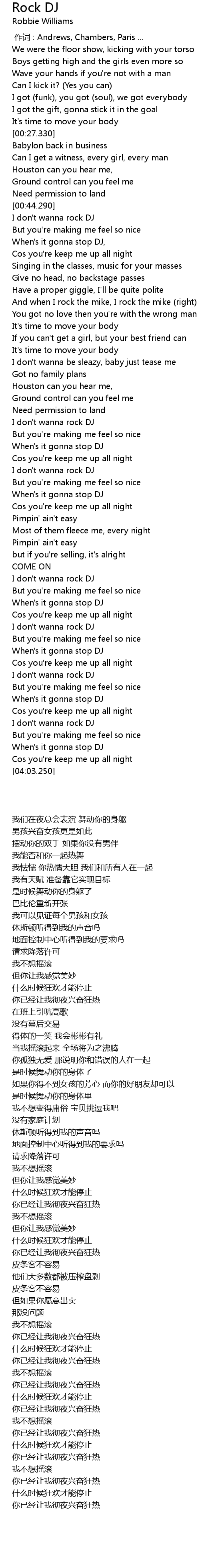 | [03:44.490] | When' s it gonna stop DJ |