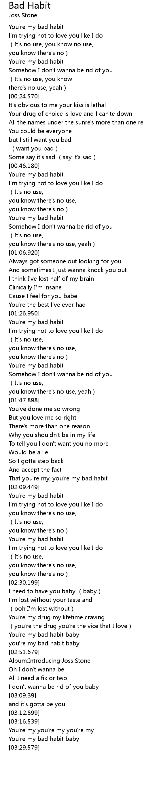 | [02:06.250] | That you' re my, you' re my bad habit |