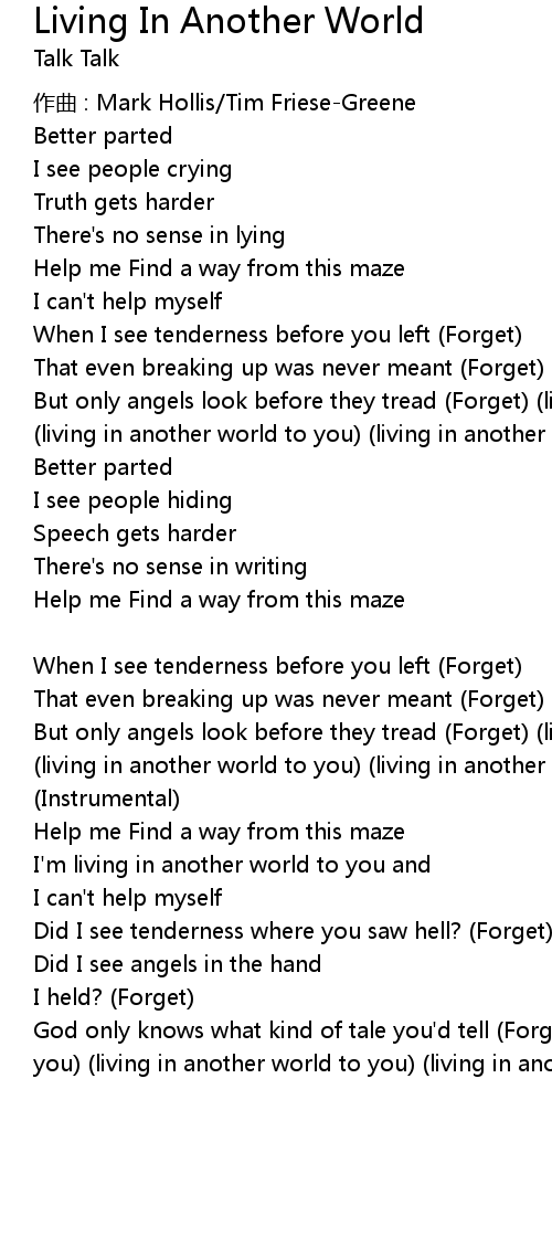 | But only angels look before they tread Forget living in another world to you living in another world to you living in another world to you | |