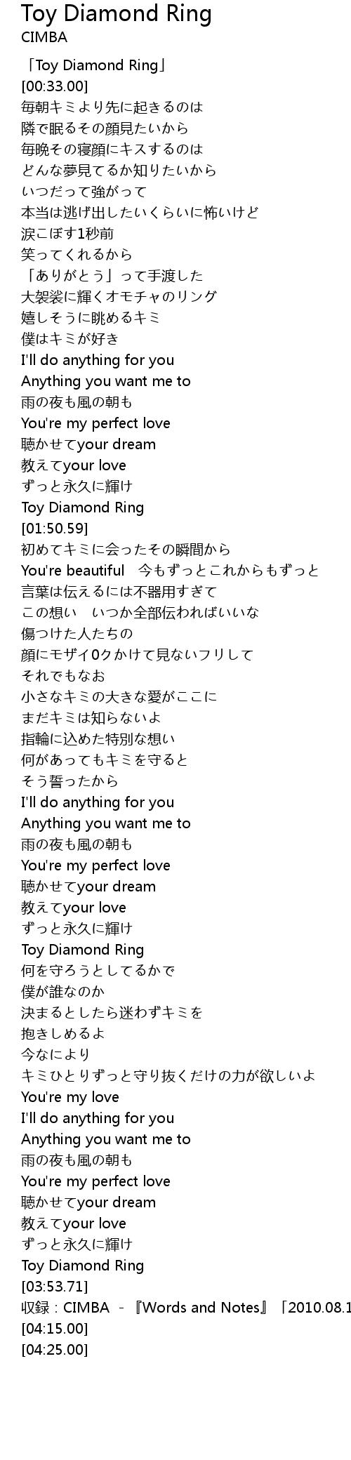 | [00:01.00] | 「Toy Diamond Ring」 |