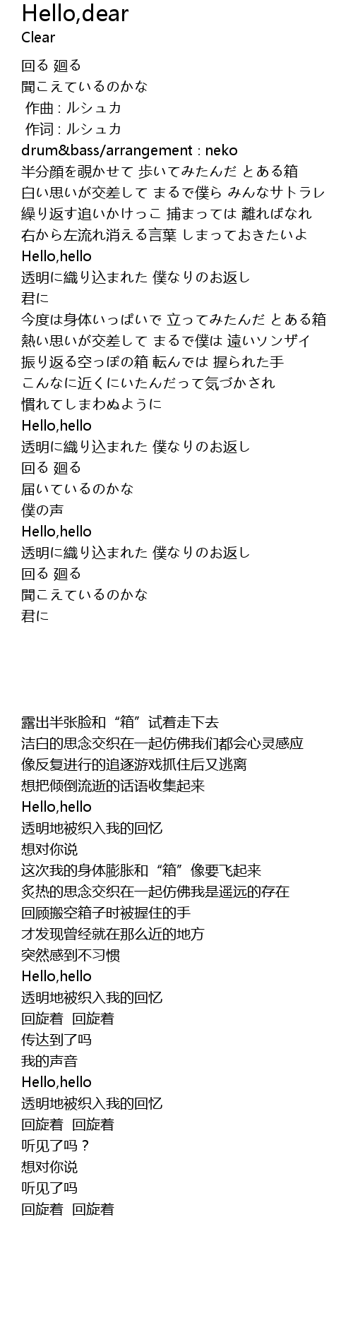 | [00:01.00] | 作词 : ルシュカ |