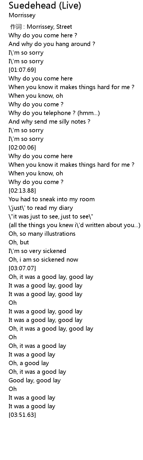 | [03:24.83] | It was a good lay, good lay |